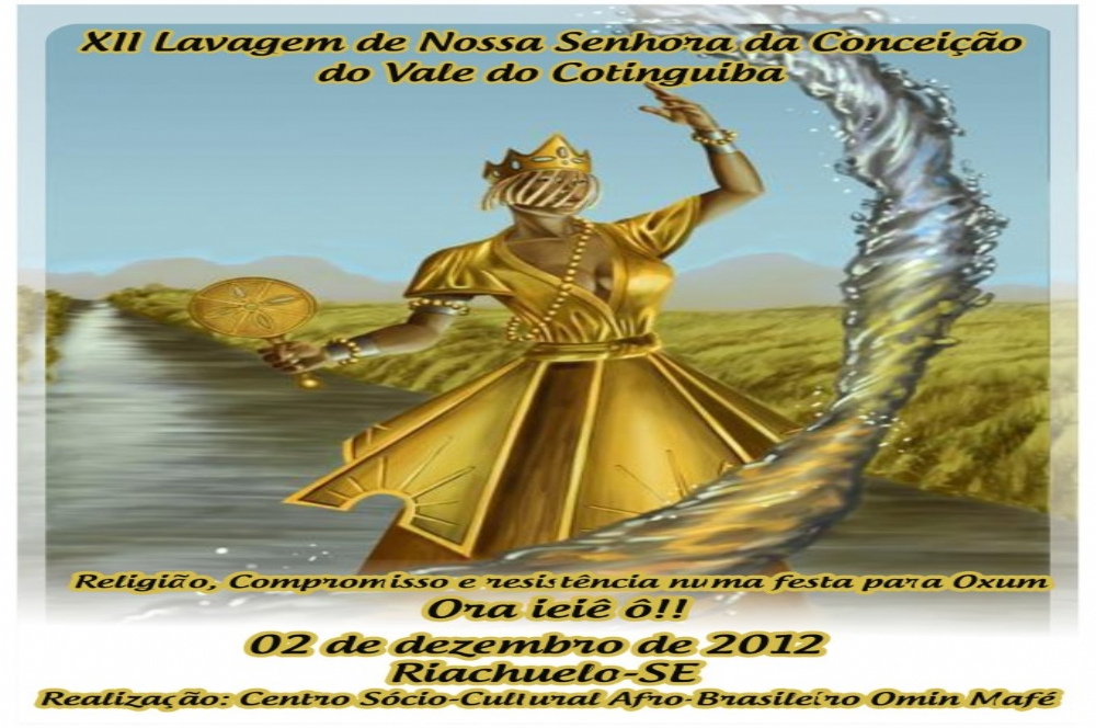 A tradicional “Lavagem de N. S. da Conceição do Vale do Cotinguiba”, que vem sendo realizada pelo Centro Sócio-Cultural Afro-Brasileiro “OminMafé”, e que vai para a sua 12ª versão, acontecerá neste domingo, 2, no município de Riachuelo, às 15h.