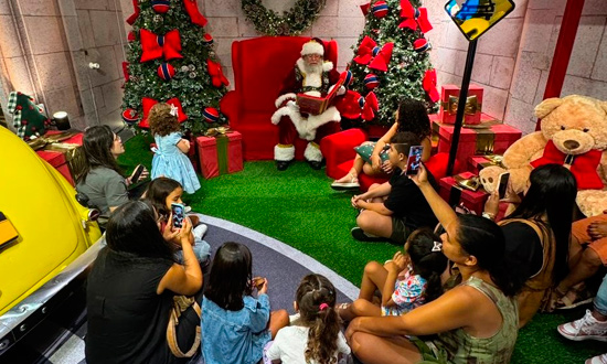 O cenário é o Ponto de Táxi do Noel, espaço especialmente criado para os encontros com o bom velhinho, que se transforma em um verdadeiro palco de magia. Em um clima acolhedor e lúdico, o Papai Noel recebe as crianças para narrar histórias que envolvem toda a família, reforçando o espírito natalino e criando memórias afetivas inesquecíveis.