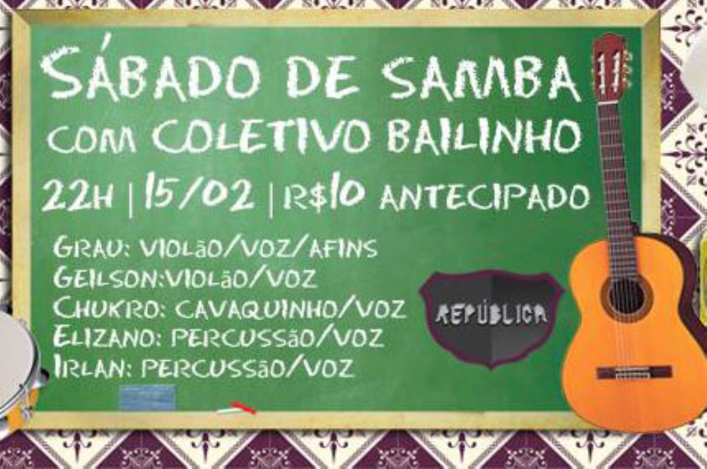 Neste sábado, 15, a Casa de Shows República recebe Vinicius Chukro, Grau, Elizano, Geilson e Irlan essa galera vai comandar um samba raiz pra todo mundo se mexer.