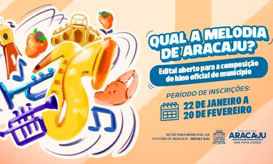 A Prefeitura de Aracaju, por meio da Secretaria Municipal da Cultura (Secult Aju), lançou o Edital de Chamamento Público nº 01/2026 para a criação do Hino Oficial do Município e as inscrições estão abertas até 20 de fevereiro de 2026 pelo portal AjuInteligente. Esta é a oportunidade de compor o símbolo musical que representará a identidade e o orgulho da capital sergipana.