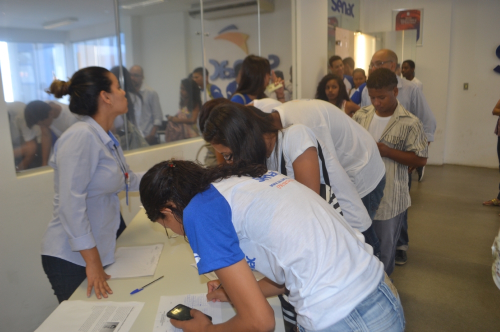 | Alunos do Senac se inscrevendo para a palestra do publicitário |