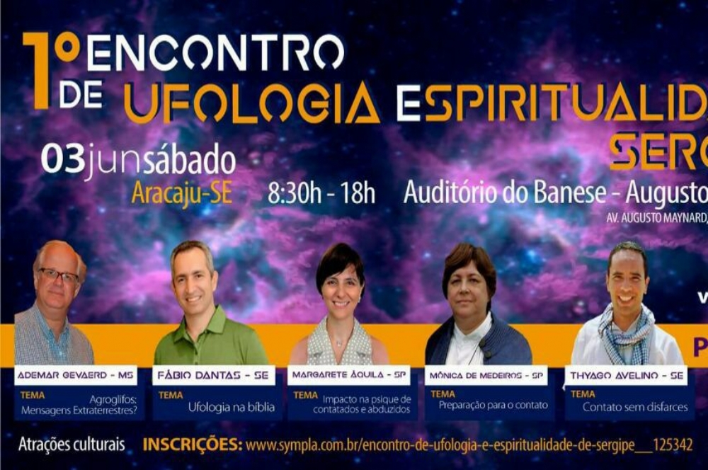 Ingressos: www.sympla.com.br – Encontro de Ufologia e Espiritualidade de Sergipe
