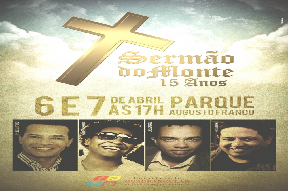 O Sermão do Monte completa 15 anos e traz grandes novidades. Serão dois dias de muito louvor e adoração a Deus. O evento que conta com grupos de dança, teatro da Paixão de Cristo, ministração do pastor Luiz Antonio, grupos musicais locais e os cantores Fernandinho, Thalles Roberto e Lucas Abreu.