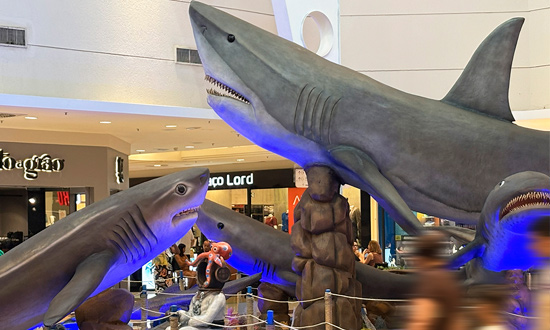 Sharks & Cia – Considerada a maior exposição de tubarões do Brasil, a atração reúne réplicas em tamanho real de 25 espécies, em modelos animatrônicos com movimentos e sons. A visitação é gratuita e acontece na Praça de Eventos Ipê, de segunda a sábado, das 10h às 22h, e aos domingos, das 12h às 21h. Aos fins de semana, biólogos da Fundação Mamíferos Aquáticos realizam visitas guiadas às 17h, proporcionando uma experiência ainda mais interessante. A participação é mediante agendamento pelo aplicativo do Shopping Jardins (Android e iOS).