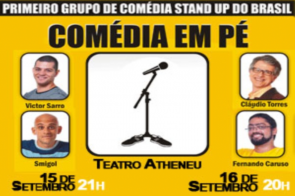 Com participação dos globais Cláudio Torres, Fernando Caruso e Victor Sarro, além do jornalista Smigol, do Sport TV, ‘Comédia em pé’ é um espetáculo recheado de humor e acontece no sábado, 15, às 21h, e no domingo, às 20h.