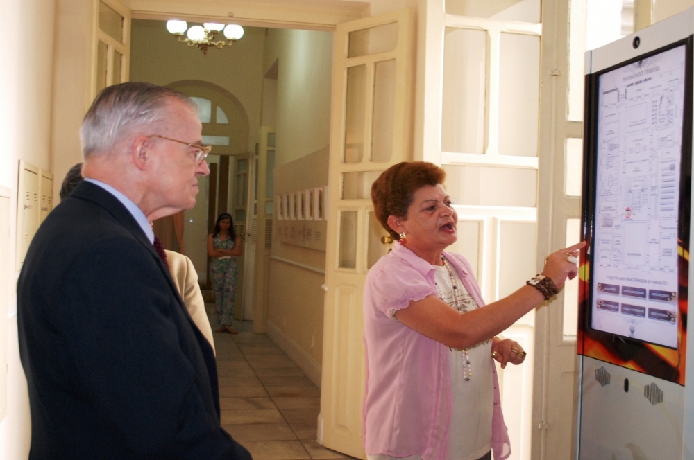 “E interessante ver o interesse dos jovens estudantes, que formam a maioria do nosso público, pela informação histórica. Eles se surpreendem e gostam bastante dessa interatividade que encontram aqui no PMOC”, disse o diretor do Palácio-Museu, Oyama Teles. Os totens estão no hall, na sala dos ex-governadores e no corredor do Palácio, próximo à sala de multieventos. Foram adquiridos pelo Palácio-Museu numa parceria com a Fundação Banese.