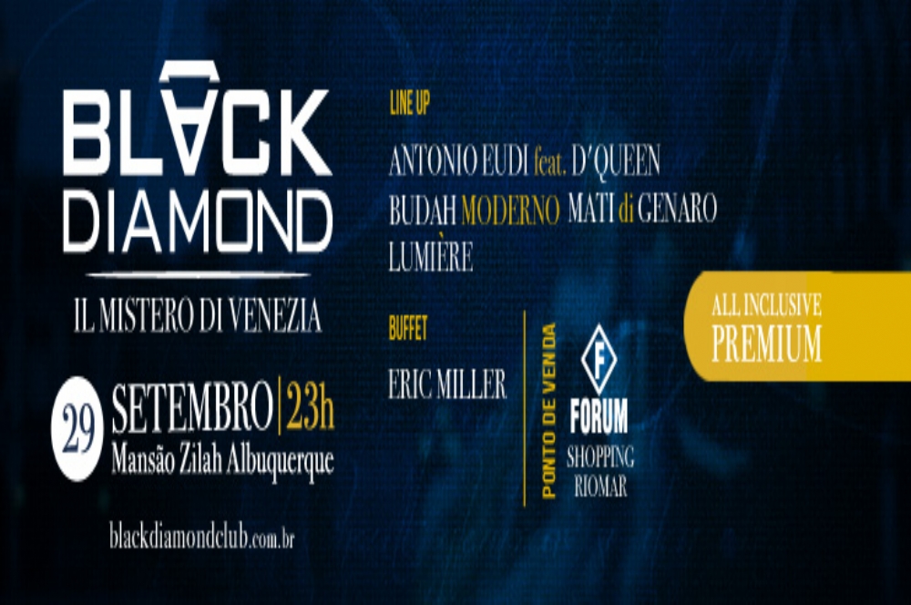 Com o tema "Il Mistero Di Venezia", a terceira edição da Black Diamond, acontece no dia 29 desse mês, a partir das 23h, na Mansão Zilah Albuquerque e traz na bagagem a aprovação das edições anteriores por todos os envolvidos direta ou indiretamente e com o intuito de manter o padrão de qualidade e o conceito de inovação nos eventos em Sergipe.?DJs de fama nacional e internacional já estão confirmados.