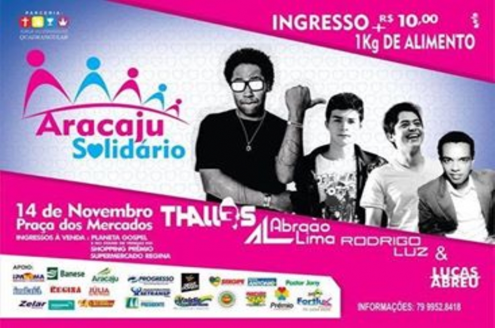 O vereador Valdir Santos é um dos organizadores do evento e espera mais de 20 mil pessoas. “Já estamos em nosso quarto ano e o Aracaju Solidário nasceu no coração de Deus para ajudar pessoas com alimento e ao mesmo tempo levamos a palavra do nosso Pai celeste aos corações”, expressa. O cantor sergipano Abraão Lima subirá ao palco com a sua banda e revela que já preparou muitas canções para louvar ao Senhor.