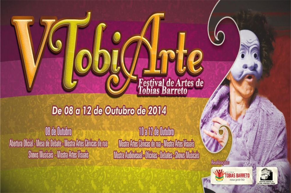 O V Festival de Artes de Tobias Barreto, acontecerá entre os dias 8 e 12 de outubro. A iniciativa, que está se consagrando como um dos maiores festivais culturais de Sergipe, envolve a comunidade local, e de outros municípios sergipano, nas manifestações artísticas, que são realizadas nas ruas e praças da cidade.