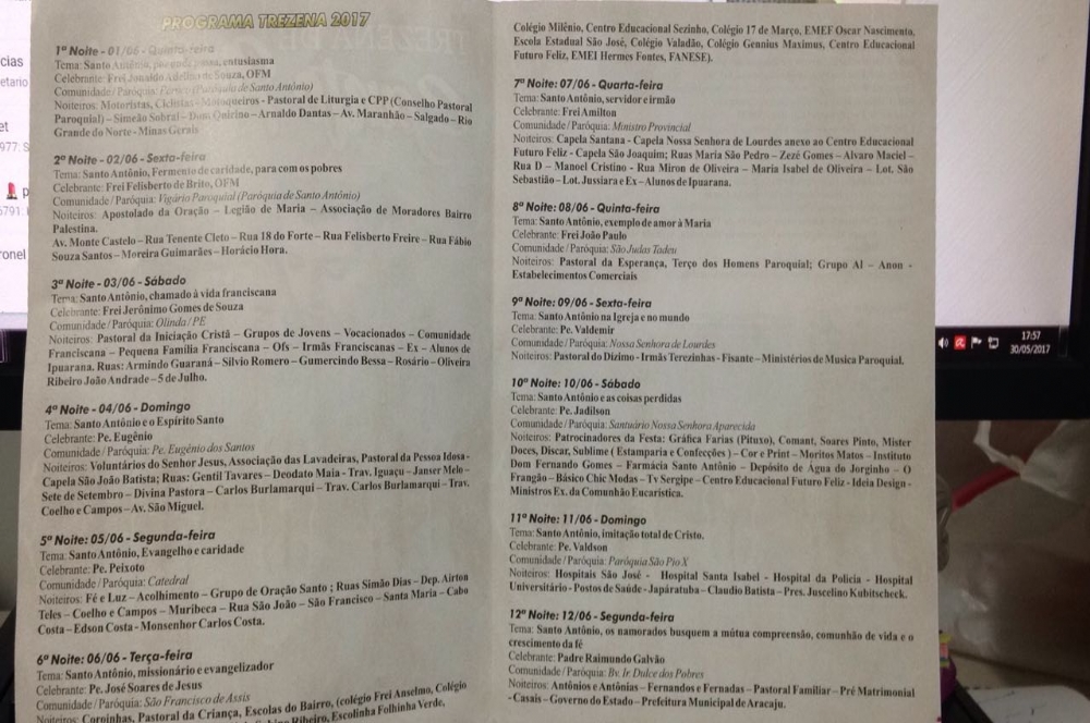 19h30: Tema: Santo Antônio, fermento de caridade, para com os pobres.