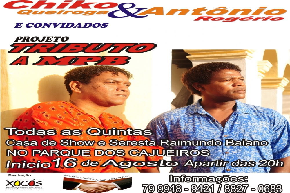 Nesta quinta-feira, 11, às 21h acontece o projeto Tributo a MPB com Chico Queiroga e Antônio Rogério na Casa de Show e Seresta do Raimundo Baiano, localizada no Parque dos Cajueiros, zona sul da capital.