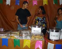 E se a fome bater durante o arrasta-pé uma boa pedida é a casa de comidas típicas da Vila Chapéu de Couro. Com um cardápio variado que inclui bolos, canjicas, pamonhas e pés-de-moleque, a casa surge como um bom lugar para abastecer os forrozeiros de plantão. Com um atendimento especializado e um amplo espaço para os clientes, a casa fica aberta até o final das atividades na Vila. O empreendimento é uma idéia da família Araújo, que, além de comercializar comidas típicas na Vila, também vende seus produtos nas feiras dos conjuntos Augusto Franco, Orlando Dantas e Médici. Segundo um dos proprietários, Cleriston Araújo, o local está pronto para atender tanto os forrozeiros quanto aqueles que desejam apenas assistir ao evento. As comidas mais vendidas são a canjica e a pamonha. A vila tem sido um bom negócio para a família. “Estamos conseguindo ganhar um dinheirinho bom”, completa Cléristom. Os preços dos quitutes variam de R$ 1 a R$ 2,50. Se a fome apertar, a dica é correr até lá e provar o que há de melhor das comidas típicas nordestinas.