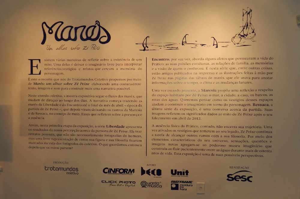 Zé Peixe foi o homenageado do mais recente trabalho elaborado pelo Trotamundos Coletivo: A exposição “Marés: Um Olhar Sobre Zé Peixe”, aberta na noite da quinta-feira, 11, traz uma primeira fase da denominada Liberdade e Encontro que segue até o dia 30 de abril na Galeria do SESC. A segunda, chamada Maresia e Ressaca será aberta ao público entre os dias 8 e 22 de maio.