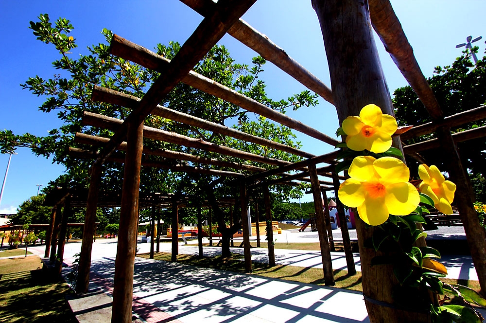 O Parque dos Cajueiros também é opção de lazer. No local, há brinquedos, quiosques e espaços para comtemplar a natureza.