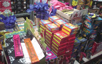 PREÇOS – Os preços dos fogos variam muito. Os usados pelas crianças como track de bebé e estalos de salão, estão custando R$ 1,00 a caixa. Do mesmo preço é o vulcão pequeno. Já a dúzia de chuvinhas varia de R$ 1,00 a R$ 3,00, dependendo do tamanho.As novidades, como a abelhinha e a mariposa são mais caras, saindo cinco unidades por R$ 3,00 e três peças por R$ 8,00, respectivamente.