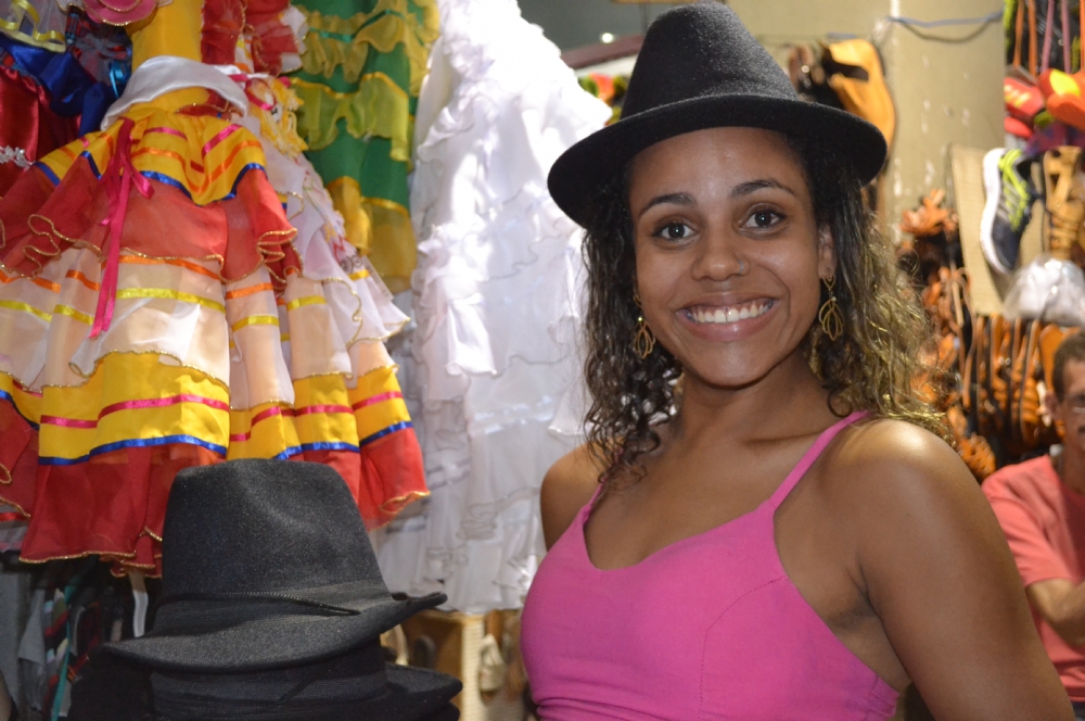 Para compor o look junino, a comerciante Camila Marilene, 20, indica o chapéu de couro ou mesmo o de palha. “Tem que escolher de acordo com a roupa. O de palha combina mais com roupa de matuto e o de couro, com a de vaqueiro”, explica a jovem que desde criança acompanha a vó nas vendas.