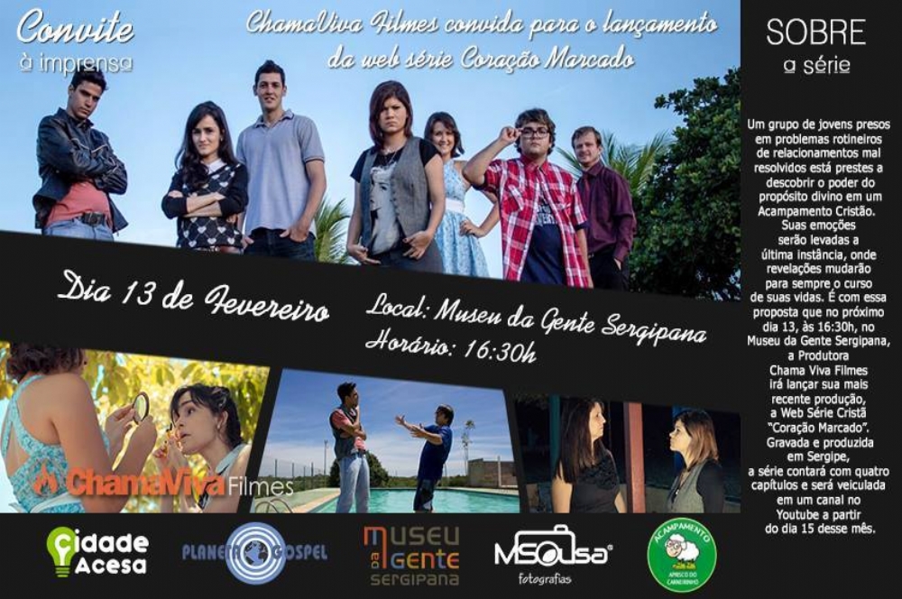 Suas emoções serão levadas a última instância, onde revelações mudarão para sempre o curso de suas vidas. É com essa proposta que hoje, 13, às 17h, no Museu da Gente Sergipana, a Produtora Chama Viva Filmes irá lançar sua mais recente produção, a Web Série Cristã “Coração Marcado”. A série contará com quatro capítulos e será veiculada em um canal no Youtube a partir do dia 15 desse mês.