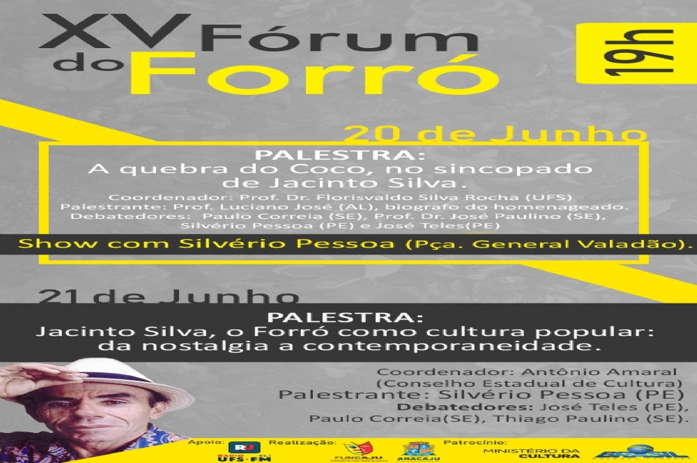 "O Fórum do Forró foi criado em 2001, por iniciativa do pesquisador Paulo Corrêa. A cada ano passou a ganhar mais notoriedade. Nesta edição nós vamos homenagear o músico alagoano, Sebastião Jacinto da Silva, mais conhecido como ‘Jacinto Silva’, falecido em 2001, mas que deixou seu nome na cultura do país”, explica o presidente da Funcaju, Cassio Murilo.