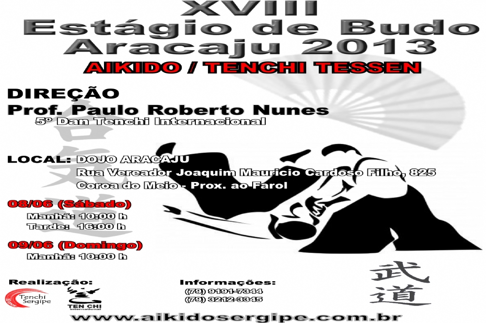 A Associação Tenchi Sergipe apresenta o XVIII Encontro Nacional de Budo em Aracaju a ser realizado nos dias nos dias 07, 08 e 09 de junho de 2013. O evento abrangerá as expressões das artes do movimento: o Aikido e o Tenchi Tessen, sob a direção do Professor Paulo Roberto Nunes–5º. Dan.