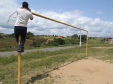 O lugar pode até ser privilegiado, mas às vezes é preciso um pouco de paciência para completar a ligação. E mesmo em casos nos quais o telefone não funciona de forma alguma, há uma saída. “A gente sobe na trave”, falou o morador. Usuário sobe na trave em Canhoba