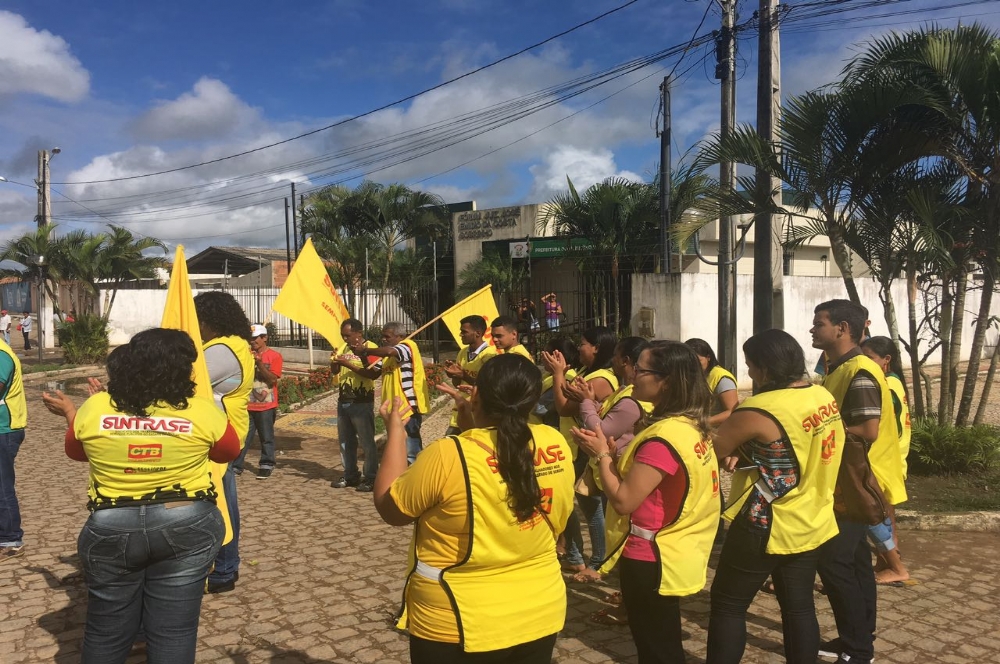 | Manifestação está sendo realizada em frente à prefeitura (Foto enviada pelo Sintrase) |
