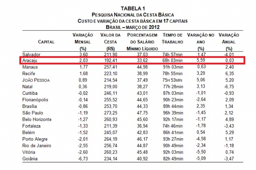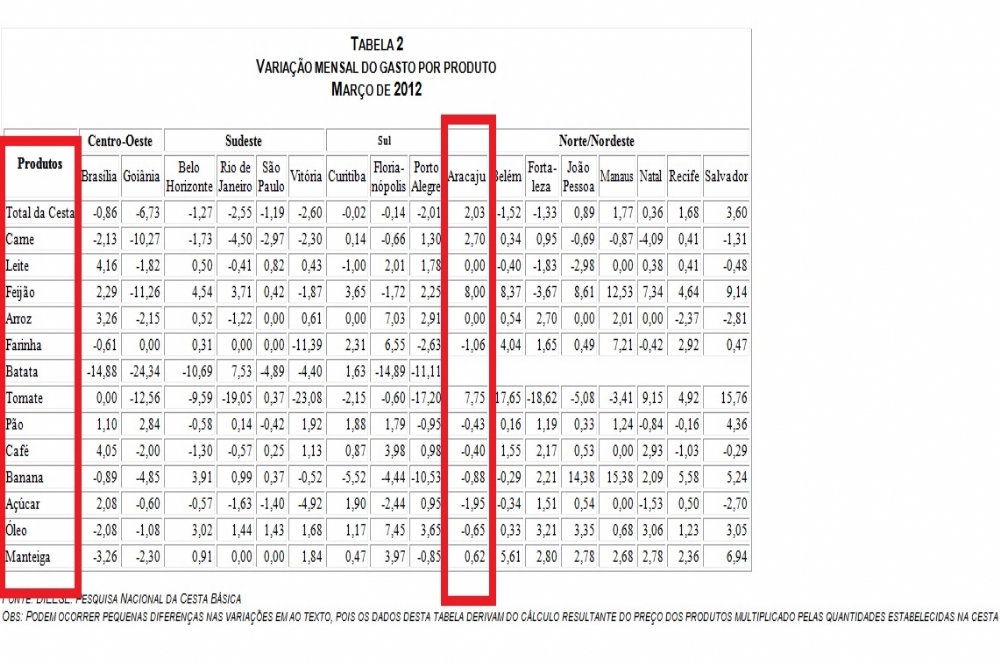 | A cesta básica em Aracaju continua a apresentar o menor custo |