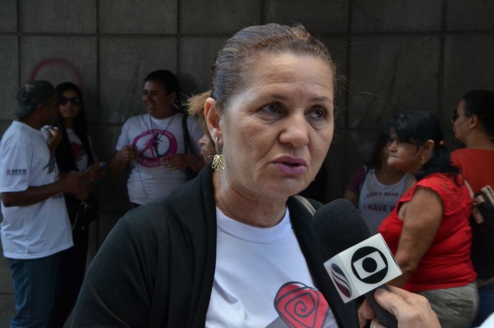 | Rosângela exibe cartaz com rosa despedaçada: o sentimento dos bancários |