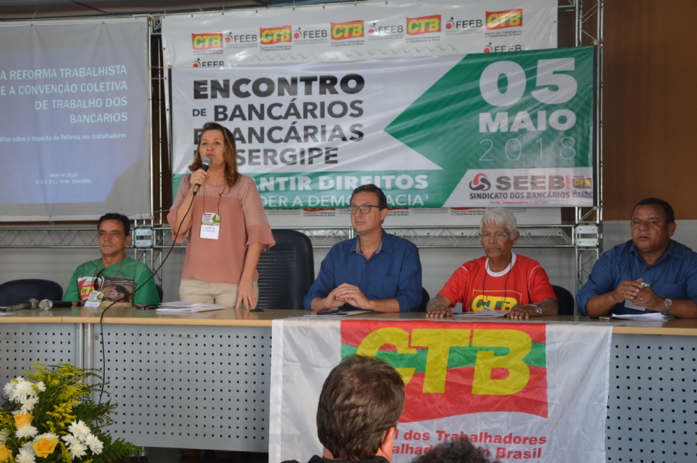 “Antecipamos em dois meses o início da nossa campanha nacional e decidimos fazer um encontro estadual, justamente em um sábado, para que todos os colegas pudessem estar presentes. Nosso objetivo aqui é debater a reforma trabalhista, os impactos dela para o acordo coletivo da nossa categoria, e também fazer a defesa da Previdência. Além disso, vamos discutir a pauta nacional e as pautas específicas de cada banco”, explica a presidente do Seeb/SE, Ivânia Pereira.