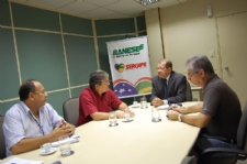 O presidente da Empresa de Desenvolvimento Agropecuário de Sergipe (Emdagro), Jefferson Feitoza, esteve nesta sexta-feira, 14, na sede do Banco do Estado de Sergipe (Banese) para alinhar informações e discutir medidas voltadas para os mini e pequenos produtores rurais que são atendidos pelas duas instituições. Feitoza, que estava acompanhado pelo chefe da Divisão de Crédito Rural da Emdagro, Deodato Lima Filho, foi recebido pelo diretor de Crédito de Desenvolvimento do Banese, Edson Caetano, e pelo gerente da Área de Crédito Rural do banco, Lauro Monteiro Rocha.