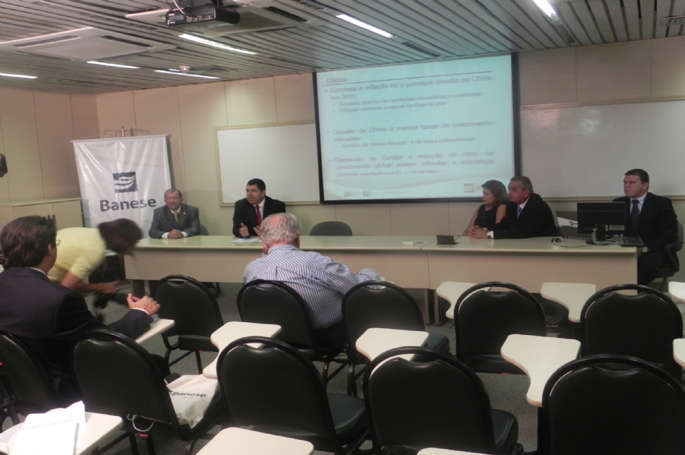 Saumíneo Nascimento fez um apanhado de como está a economia internacional, a economia brasileira e principalmente a economia sergipana. O crescimento do Produto Interno Bruto (PIB) em 2011 no mundo foi de 3, 8%, com perspectiva de 3,3 em 2012. No Brasil, a perspectiva de crescimento é na faixa dos 3%, com uma inflação em trajetória descendente e expectativa de mercado em 4, 0%.
