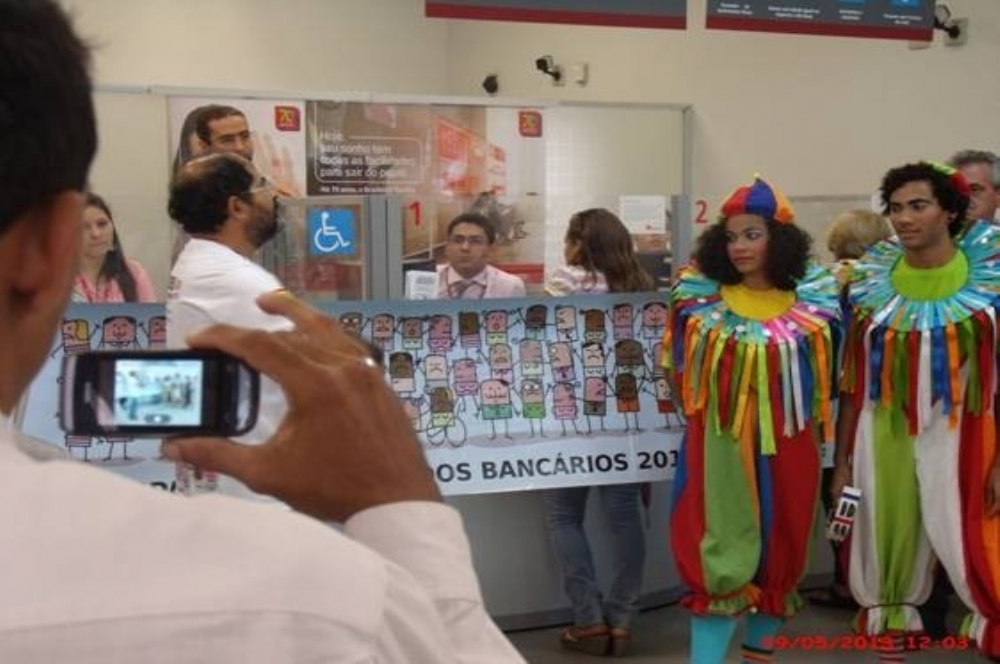 Nessas visitas, o sindicato também dialoga com os clientes esclarecendo sobre a campanha e alertando-os sobre uma possível greve nacional, caso a Federação Nacional dos Bancos (Fenaban) se mantenha intransigente, negando as reivindicações dos bancários. “Nas últimas campanhas salariais para mobilizar a categoria, o sindicato consagrou a parceria com o grupo de teatro. Entendemos que o humor, a irreverência e o colorido utilizado pelo teatro popular potencializam nosso diálogo com a categoria e clientes”, afirma o presidente do SEEE/BE, José de Souza