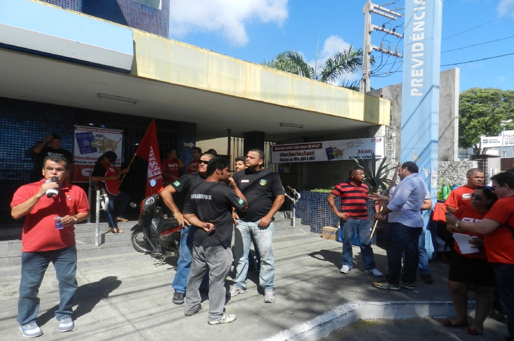 As Centrais Sindicais realizaram um ato na manhã desta quarta-feira, 28, na Porta do Instituto Nacional do Seguro Social (INSS) situado na avenida Ivo do Prado. O “Dia Nacional de Lutas por Empregos e Direitos” é um manifesto em protesto contra as Medidas Provisórias 644 e 645.