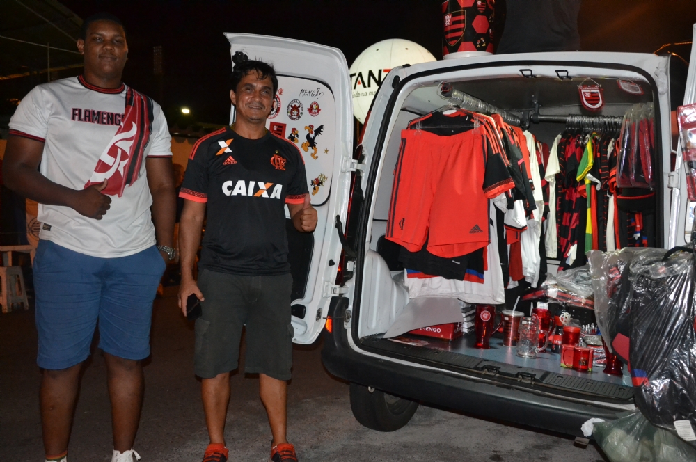 Apesar da partida só iniciar às 21h45, por volta das 18h o movimento de torcedores nas fileiras de entrada já era bastante significativo, principalmente na entrada lateral – reservado para a torcida rubro-negra. E quem projetou encher o bolso com o consumo desses torcedores foi o baiano Trajano Júnior. O comerciante trouxe seus produtos oficiais do Flamengo para Aracaju e espera arrecadar pelo menos 50% a mais do que em outras partidas. “Aqui em Aracaju não se vê todo dias jogos como esse, com um potencial comercial tão grande. Meus planos é conseguir vender duas vezes mais que o normal”, disse.