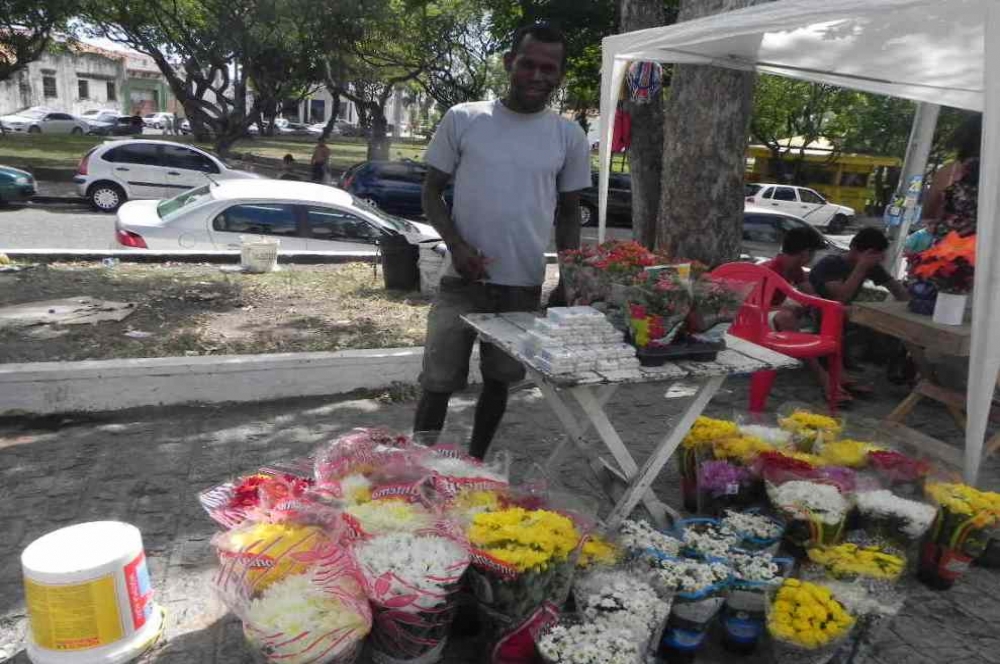 | Comerciante vende velas, flores e fósforos (Fotos: Portal Infonet) |