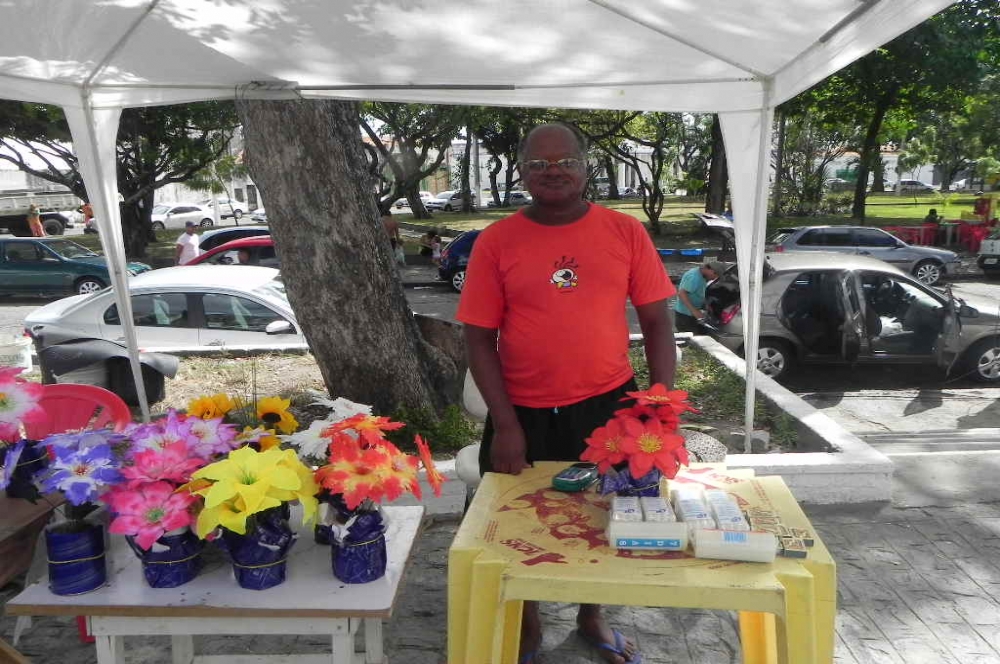 | Comerciante vende velas, flores e fósforos (Fotos: Portal Infonet) |