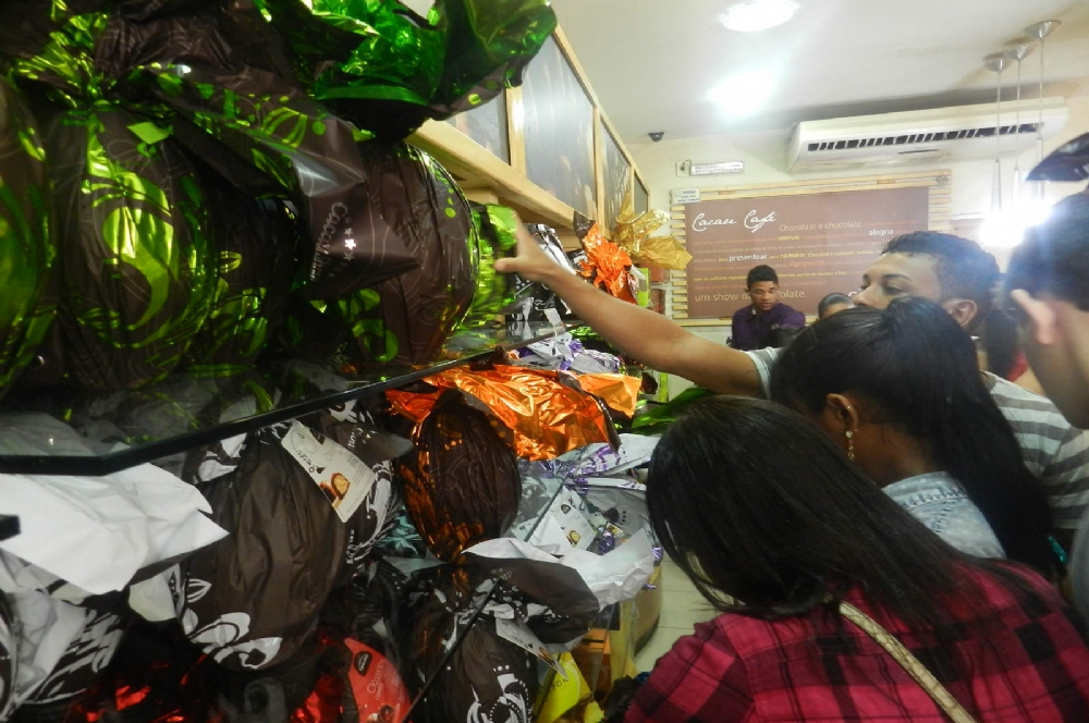 Em uma das lojas especializada em chocolates no centro da capital, a fila se formava logo nas primeiras horas da manhã. Muitos consumidores não se importaram de enfrentar cerca de 20 minutos ou mais do lado de fora do estabelecimento.