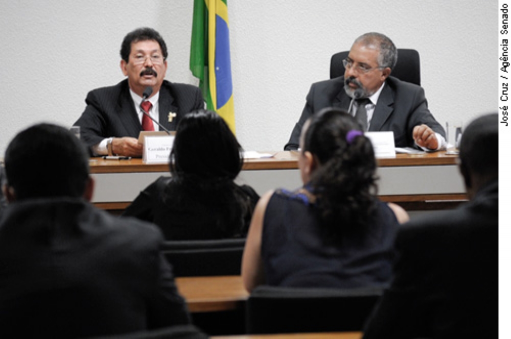| Geraldo e o senador Paulo Paim: parecer pela aprovação (Foto: José Cruz/Agência Senado) |