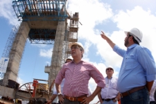 “Esta é a maior ponte em construção no Nordeste e apresenta um cronograma de execução extraordinário com 70% da obra pronta. Tivemos a oportunidade de presenciar o içamento da 37ª viga a ser inserida na estrutura e percorrer a primeira parte do tabuleiro da ponte que já foi instalado. Além de ser uma conquista histórica para Sergipe, esta ponte pode ser considerada a maior obra de engenharia já realizada na região Sul do estado”, avaliou o governador Marcelo Déda, ao descrever o roteiro da visita realizada na manhã desta segunda-feira, 2, ao lado de representantes da imprensa sergipana.
