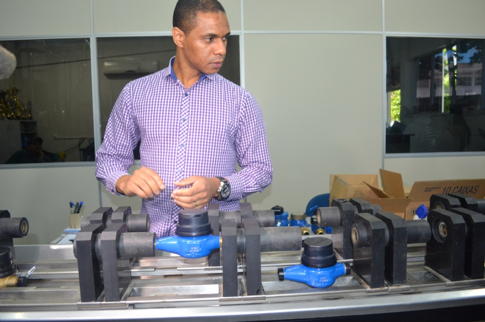 | Thiago faz demonsrativo com hidrômetro |