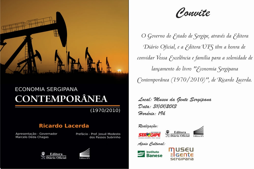 De acordo com Ricardo Lacerda, o livro registra as transformações da economia sergipana de 1970 a 2010, construindo um panorama geral e setorial da economia do Estado no período. “A obra pretende colaborar para qualificar o debate sobre o desenvolvimento do nosso Estado”, disse o autor.