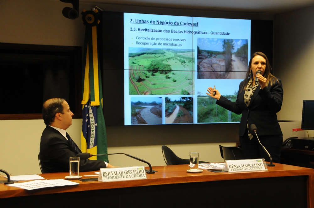 Em sua explanação sobre a atuação da Codevasf, Kênia Marcelino apresentou aos integrantes da Cindra a missão da Companhia, destacando o seu raio de atuação nas áreas de agricultura irrigada, infraestrutura hídrica, revitalização das bacias hidrográficas do São Francisco, Parnaíba, Itapecuru e Mearim, além das ações de inclusão produtiva, apoio aos Arranjos Produtivos Locais e a universalização do acesso à água.