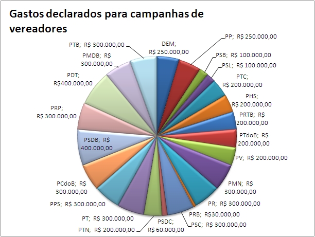 Em Aracaju, as coligações de candidato à vereador e prefeito devem gastar juntas mais de R$ 17 milhões durante toda a campanha eleitoral. Os valores foram calculados através dos gastos limites de campanha, declarados pelos partidos à Justiça Eleitoral. Nas eleições proporcionais, os partidos juntos estimam gastar R$ 5,4 milhões e os candidatos a prefeito da capital vão gastar juntos R$ 11.680.000,00. Gastos declarados dos candidatos a prefeito de Aracaju