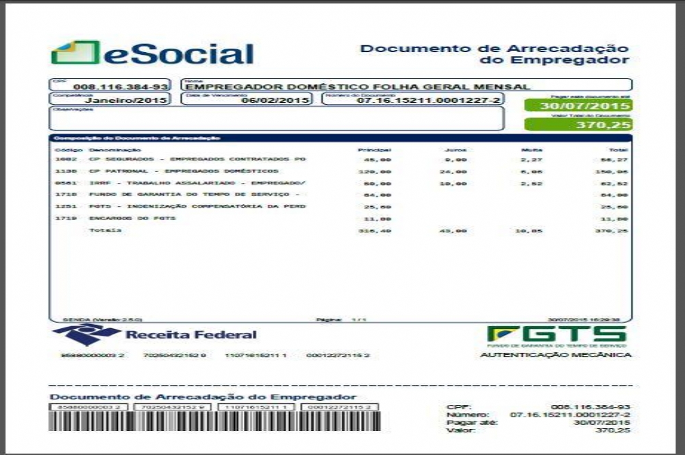Para a emissão da guia unificada, o empregador deve acessar a página do eSocial na internet. Se não for recolhido no prazo, o empregador paga multa de 0,33% ao dia, limitada a 20% do total.