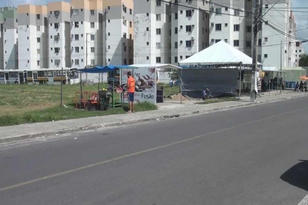 | Comerciantes começam a ocupar praça pública no Jabotiana (Foto: Portal Infonet) |