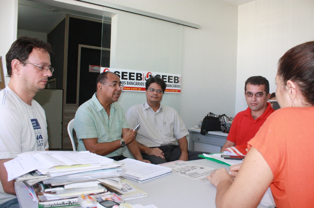 Participaram da reunião Adelmo Meneses e José Ailton Castro, presidente e secretário de Imprensa do SINDIPEMA; Roberto Silva, vice-presidente da CUT; Edval Góes, presidente da CTB/SE; e Ivânia Pereira e Marcos Gregório Queiroz Almeida, diretora de Imprensa e assessor jurídico da SEEB.