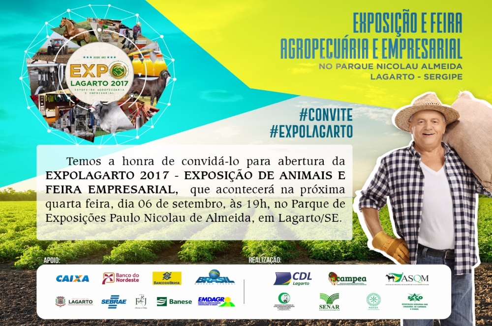 A Exposição e Feira Agropecuária e Empresarial de Lagarto (Expolagarto) começa na próxima quarta-feira, 6, em Lagarto, no Centro-Sul de Sergipe. Organizada pela Associação Sergipana dos Criadores de Caprinos e Ovinos (Ascco), com patrocínio do Banco do Nordeste, o evento reunirá cerca de 60 mil pessoas no Parque Nicolau Almeida.