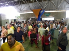 A facilidade e a comodidade levaram o casal Erionaldo de Jesus e Angélica de Lima ao CIC, em busca do primeiro imóvel. De acordo com Erionaldo, as várias opções disponíveis em um mesmo local auxiliam na decisão da compra. “Pretendemos encontrar o imóvel desejado hoje. Vamos verificar preços, prazos, valor da parcela e, principalmente, localização. Queremos fechar negócio logo”, afirmou. Público chegou a formar fila na entrada do CIC