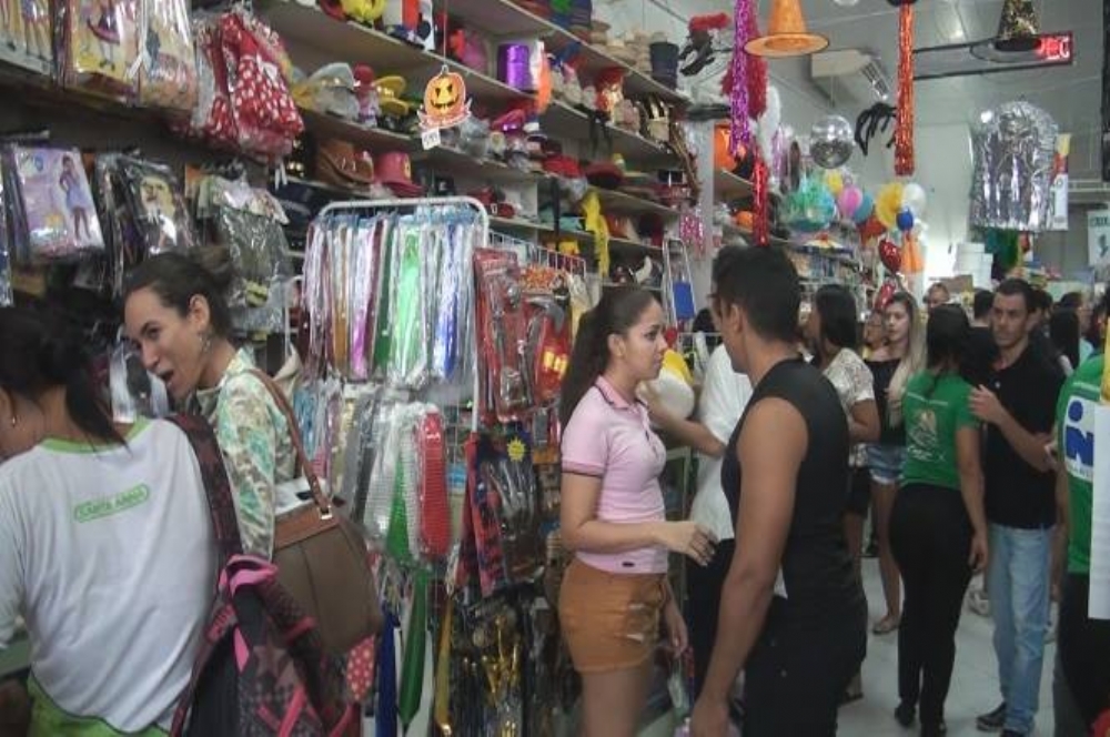 | Festeiros vão em busca de acessórios para fantasias (Foto: Portal Infonet) |