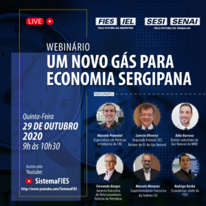 A Federação das Indústrias do Estado de Sergipe (FIES) lançará no dia 29 de outubro, das 9 às 10h30, através do canal SistemaFIES no Youtube, o estudo “O novo gás de Sergipe: retrospectiva e oportunidades para Sergipe a partir do programa federal “Novo Mercado de Gás””.