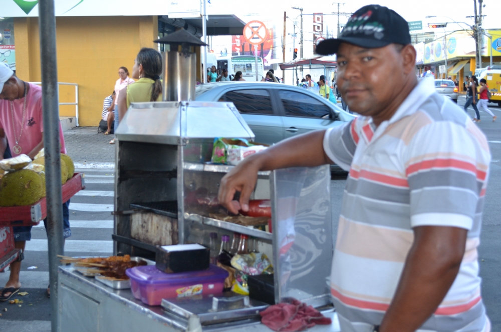 "Eu vendo churrasquinho aqui hno Centro há cinco anos. Essa medida só vai atrapalhar o nosso ganha pão. Eles alegam que a gente atrapalha o trânsito. Tem uns que ficam mesmo pelo meio da rua. Por causa de uns todos pagam", lamenta o ambulante Edosn Nascimento dos Santos.